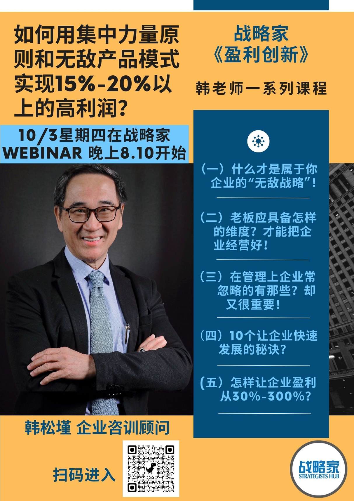 [10/3 星期四晚上8.10在战略家 Webinar ]《战略家《盈利创新》!!》